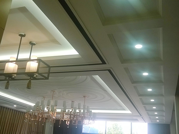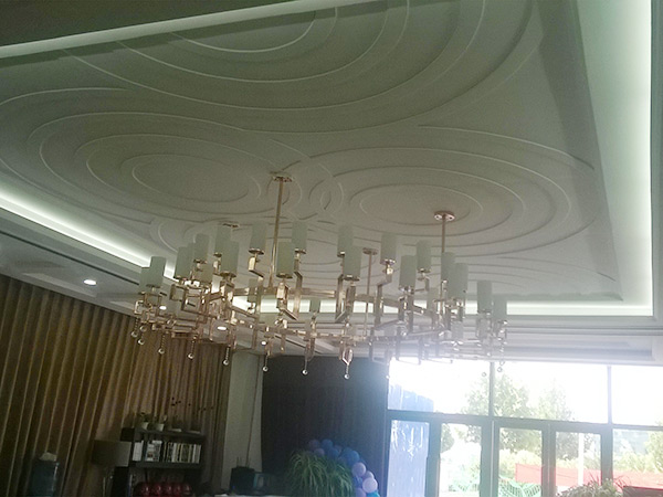 工程主要内容:销售大厅及办公室走廊、卫生间等公共空间墙地面铺设、墙体刷新、艺术吊顶、墙面造型施工、玻璃隔墙施工、壁纸、布幔、办公家具、洁具卫浴、灯具、套装门等项目。